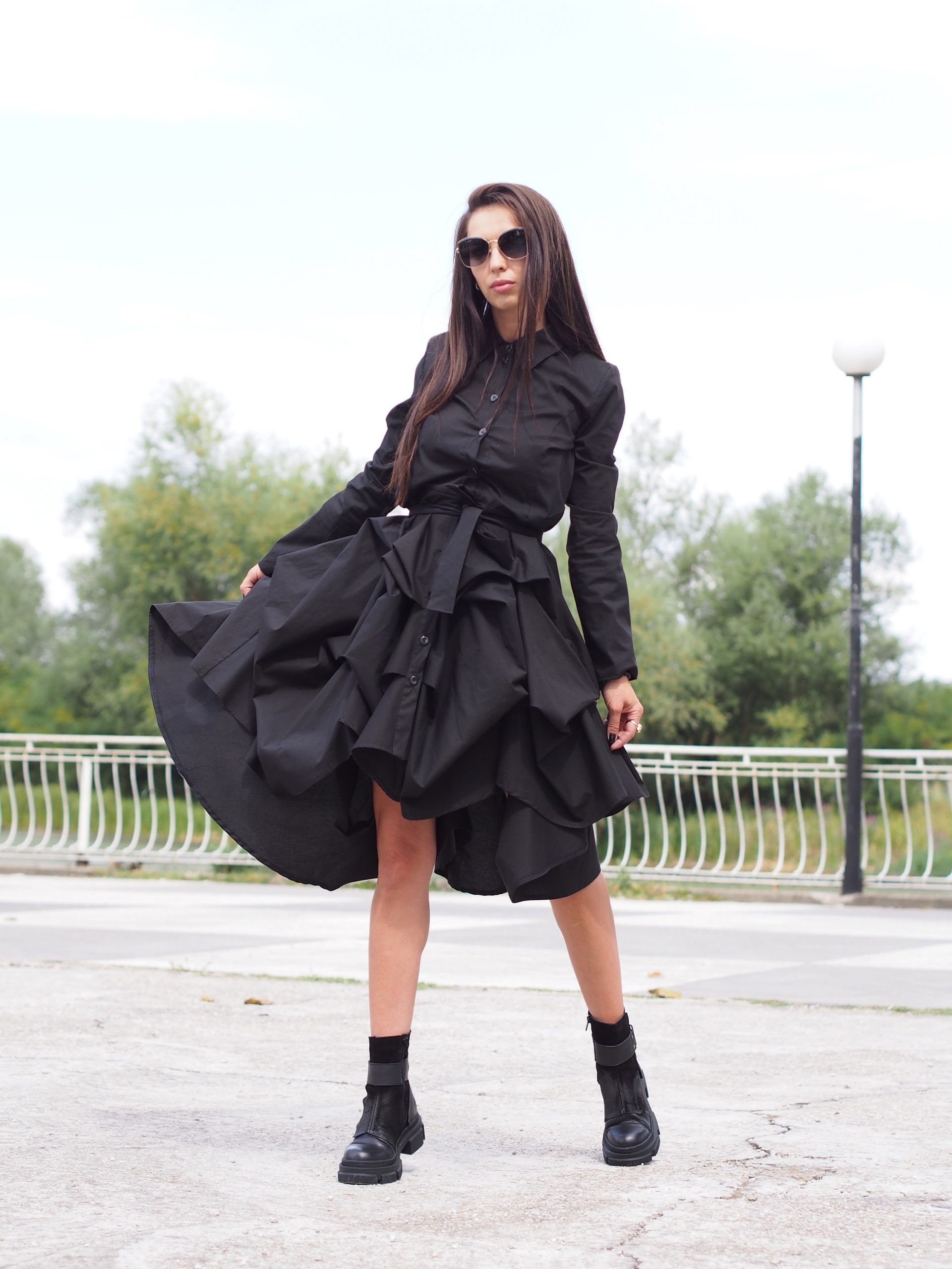 Make a bold yet effortless statement with this black flared shirt dress the perfect combination of comfort and timeless style.
