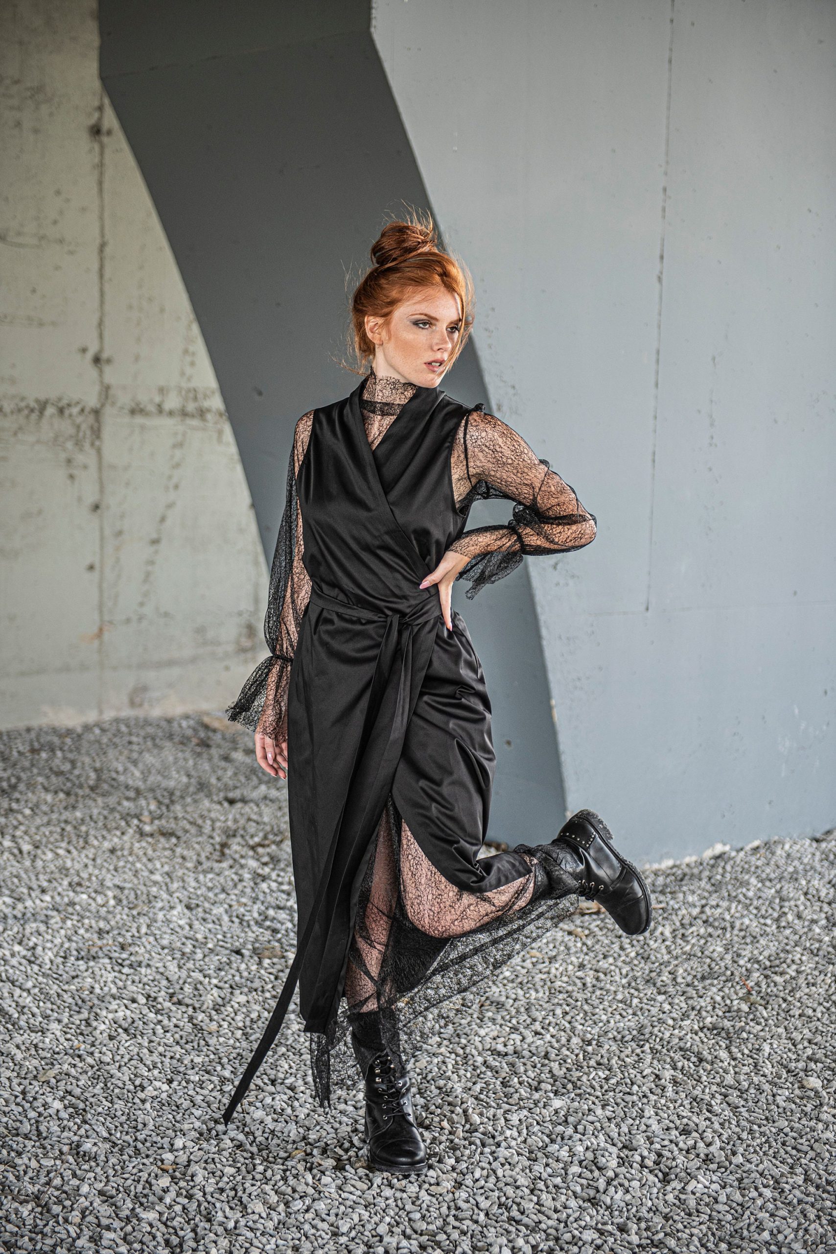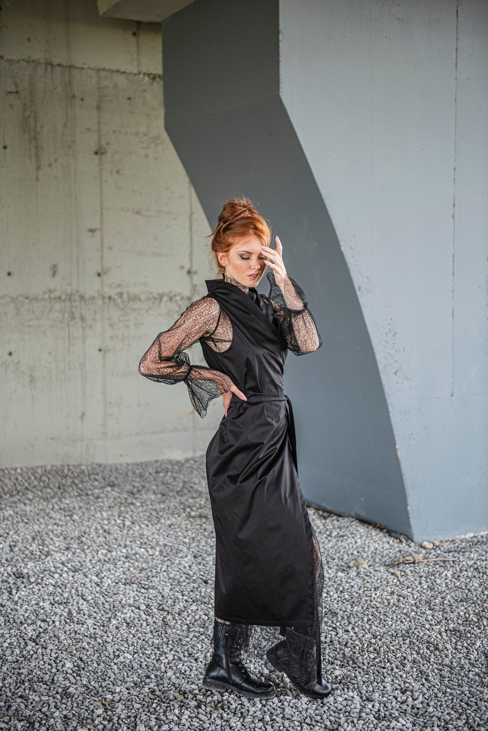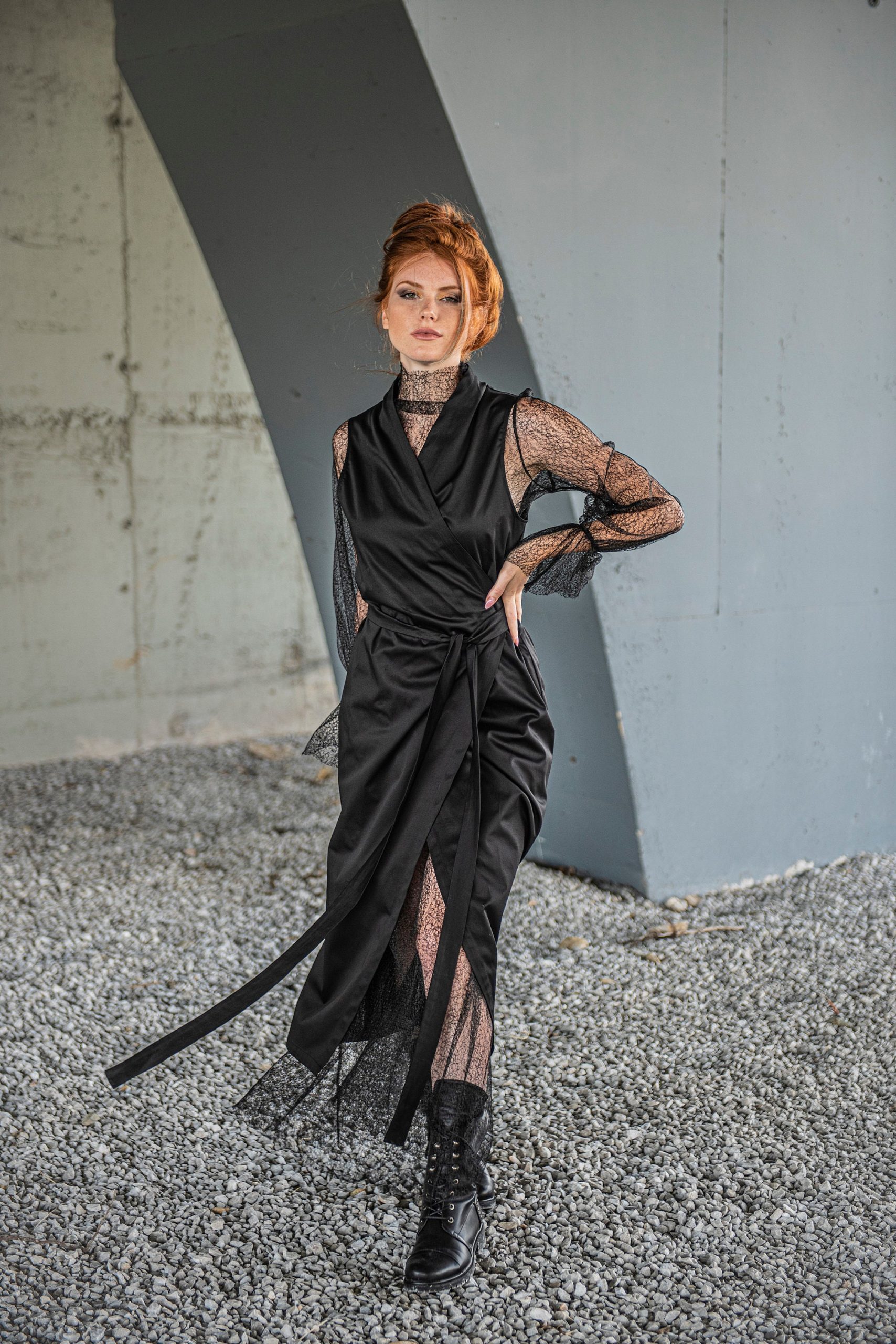 Black Lace Dress Gothic Maxi Wrap Cocktail Prom
