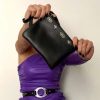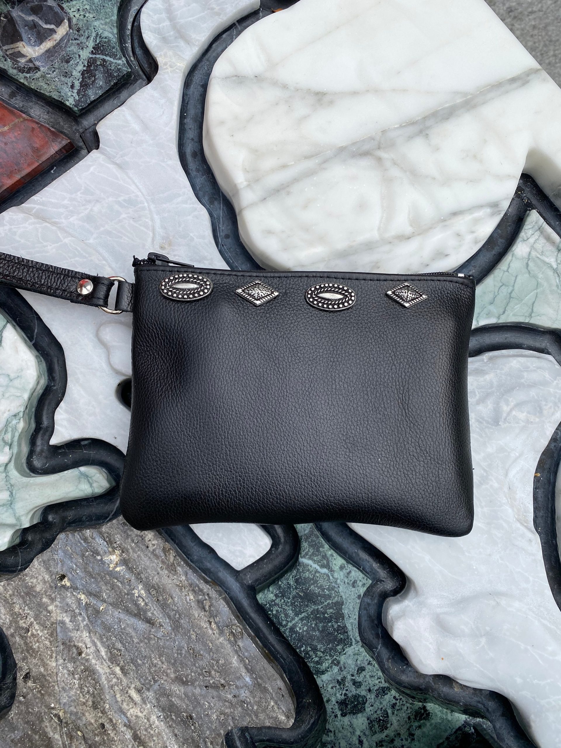 Introducing the exquisite Handmade Leather Clutch, crafted with utmost care using premium Full Grain Leather. This captivating accessory stands out with its striking silver geometric buckles, setting it apart from the rest. Designed to be your constant companion, this versatile Black Leather Clutch is perfect for any occasion. Discover its unrivaled versatility and exceptional quality, exclusively available at our Store. Make a statement and elevate your style with this timeless piece.