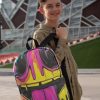 ¡Neón para destacar! 😜 Mochila de lona con impresión total y cara graffiti smiley. Ligera y resistente para escuela, viajes o festivales.