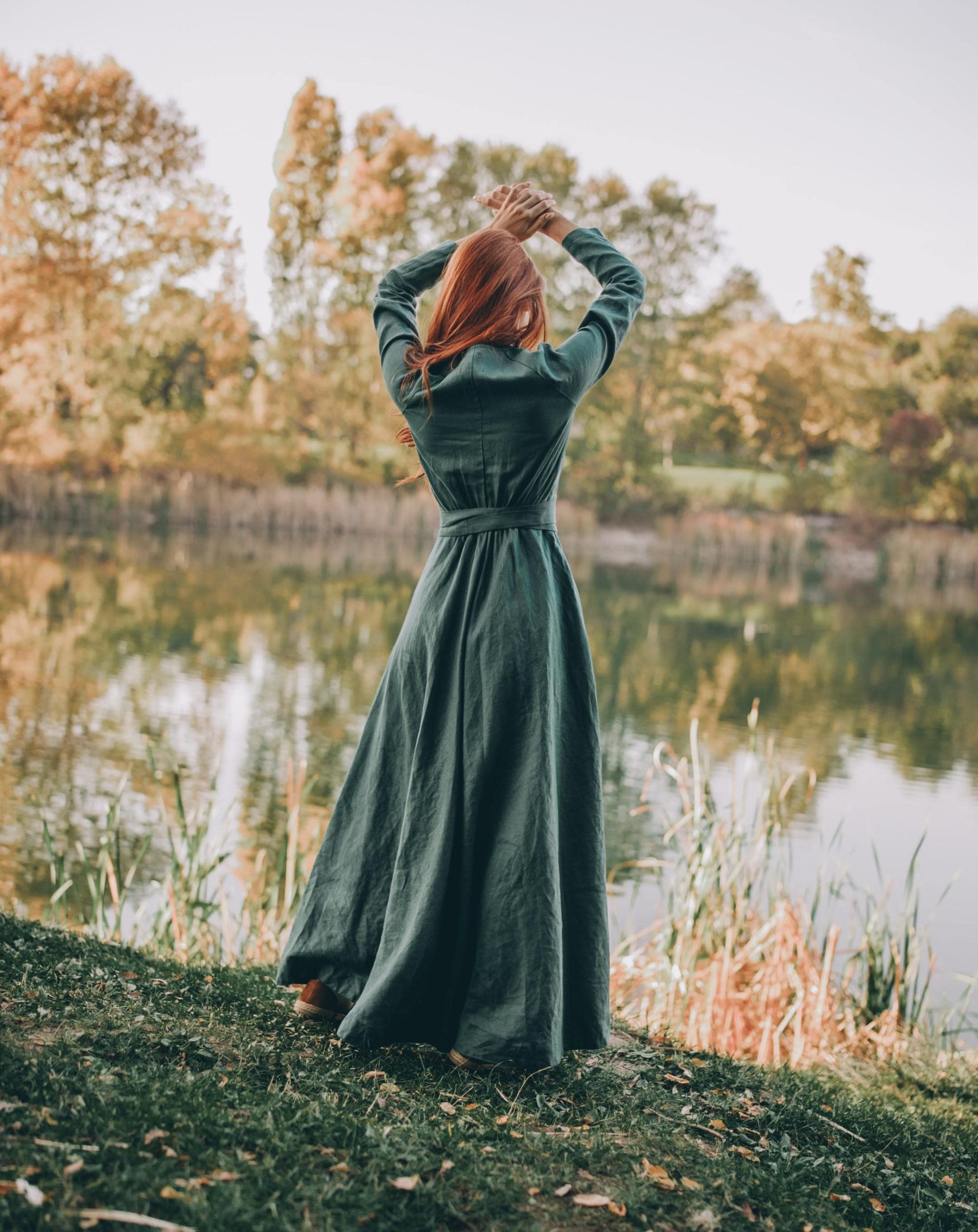 Sea Green Linen Maxi Dress: Heavyweight Full Circle